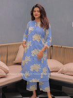 Step into effortless charm with the Blue Wildflower Cotton Co-ord Set. Crafted from soft cotton, this casual yet elegant duo brings everyday comfort with a twist—lace detailing on the sleeves adds a dash of luxury...